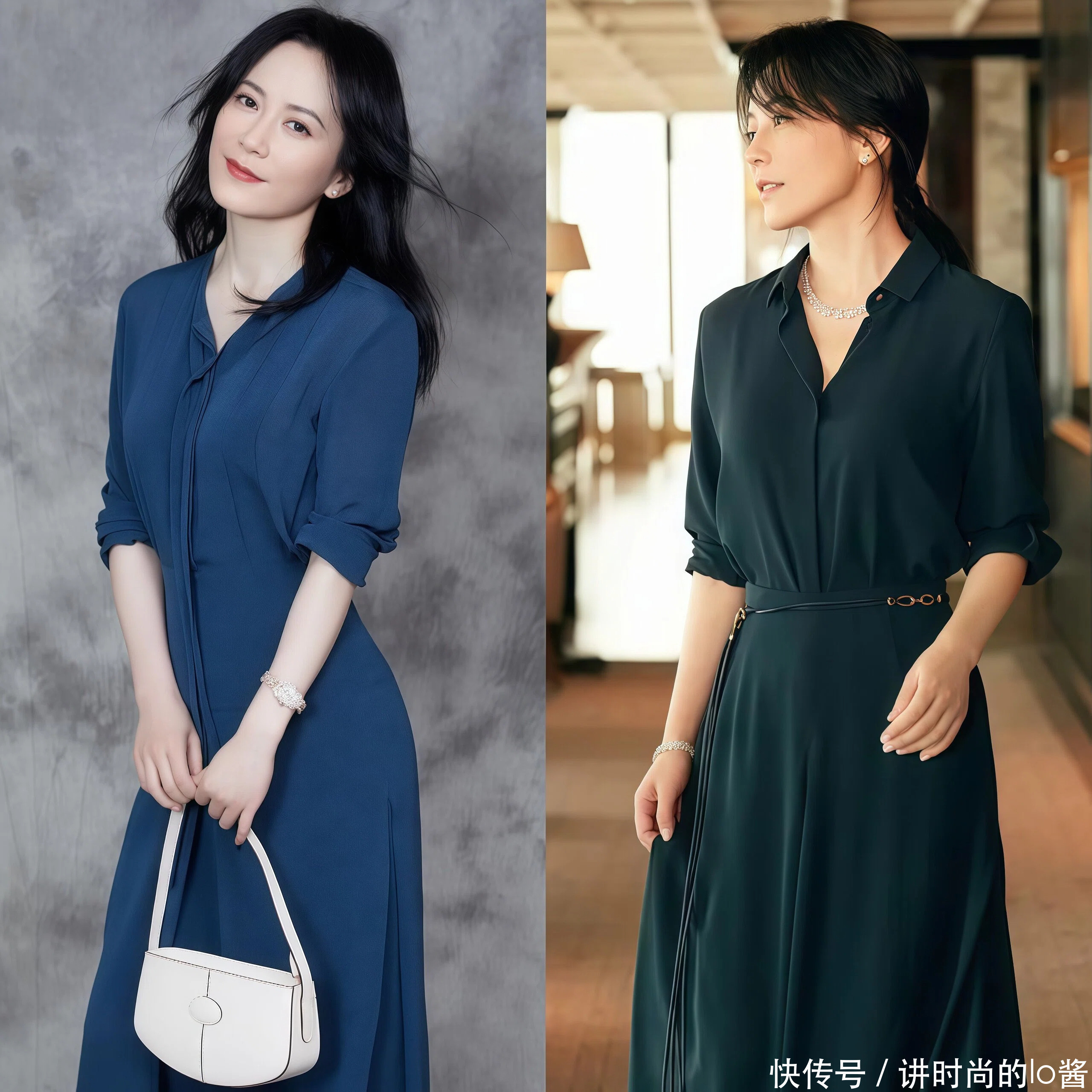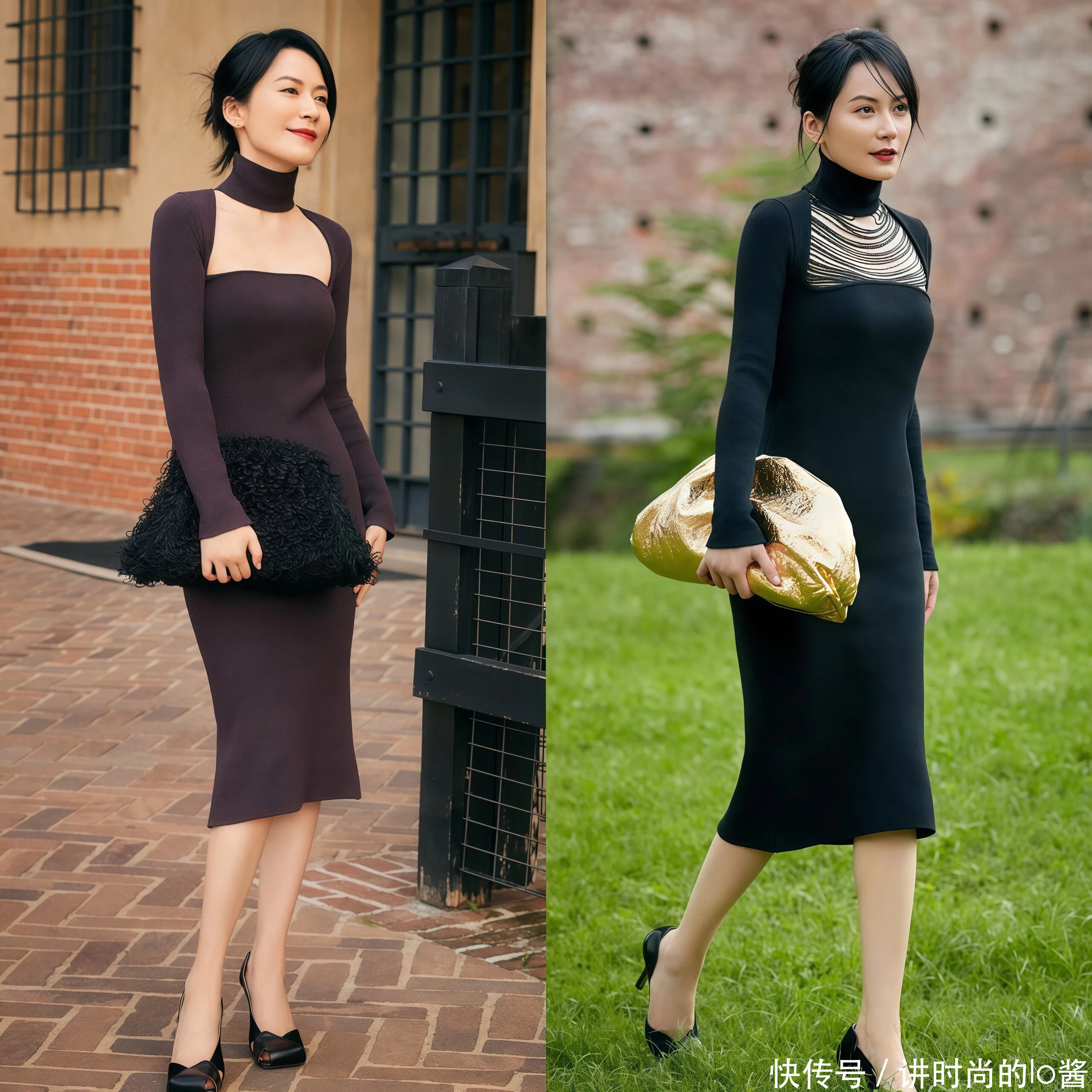 俞飞鸿的衣橱里,最常见的就是修身连衣裙,可以勾勒出身材曲线,彰显出绝美的女人味。修身款式的连衣裙,尽量不要选择花色,膨胀感太强,换成这种经典的纯色系,腰线位置收紧,再配双高跟鞋,才能美到骨子里!